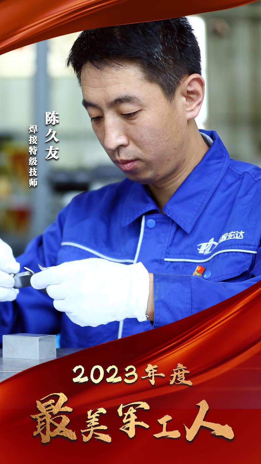 陳久友作為中國(guó)航天科工三院特級(jí)技師,是中國(guó)航天復(fù)雜構(gòu)件高性能焊接專業(yè)的領(lǐng)軍人物,從業(yè)二十多年,始終扎根基層、埋首一線。在他帶領(lǐng)下,先后完成了眾多產(chǎn)品的焊接攻關(guān)及課題技術(shù)研究,突破了多項(xiàng)技術(shù)難題,大幅提升了航天裝備焊接質(zhì)量和效率,成立了以其名字命名的航天科工集團(tuán)技能大師工作室,培養(yǎng)了一大批優(yōu)秀技能人才,為我國(guó)航天事業(yè)發(fā)展作出重要貢獻(xiàn)。