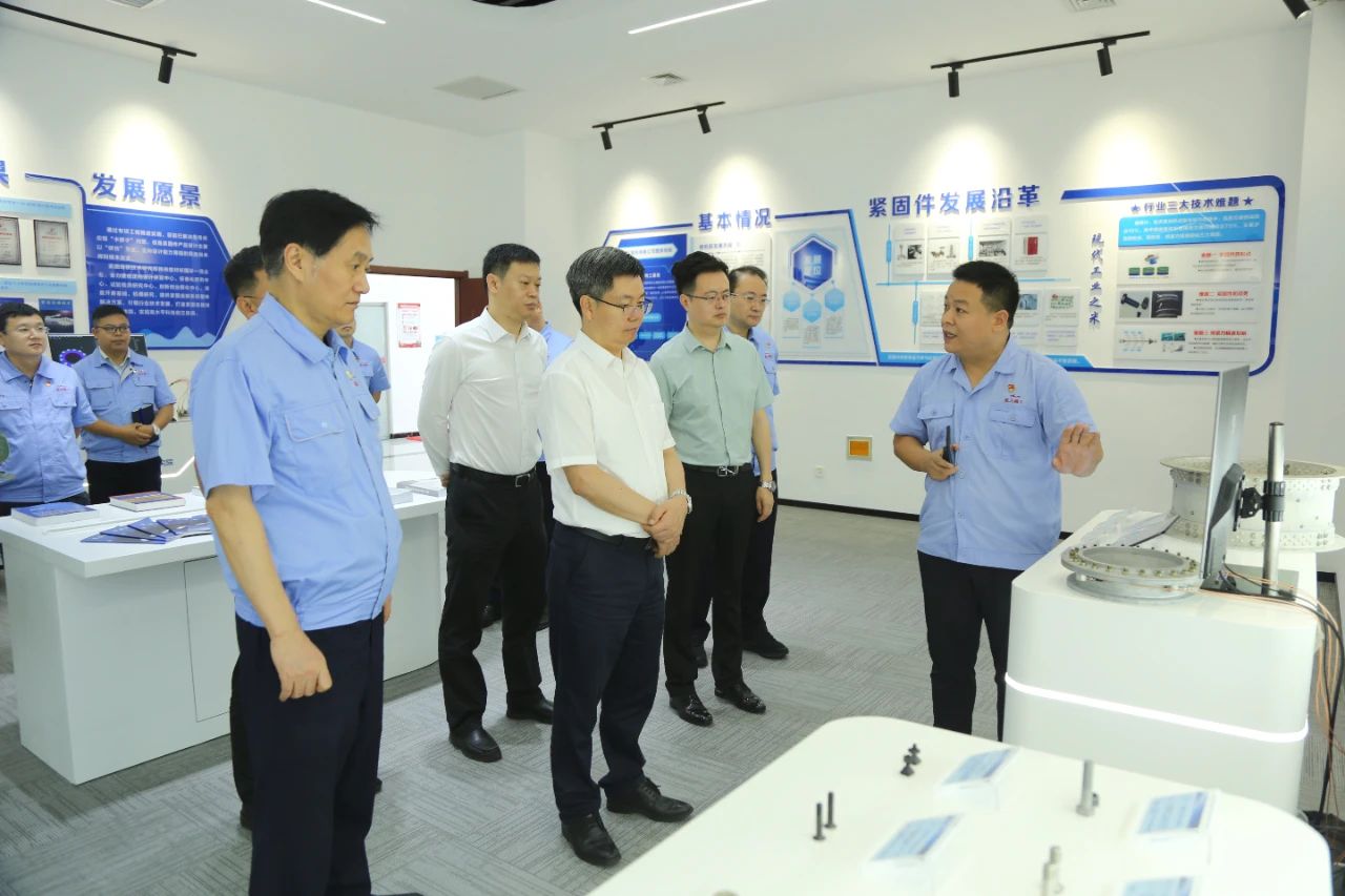27日上午,陳錫明一行來(lái)到航天精工,深入航天精工研究院、機(jī)加鐓制車間、高端抽芯鉚釘自動(dòng)化生產(chǎn)線等科研生產(chǎn)一線開(kāi)展實(shí)地調(diào)研。陳錫明詳細(xì)了解了航天精工技術(shù)研發(fā)和產(chǎn)品配套等方面情況,聽(tīng)取了航天精工關(guān)于生產(chǎn)經(jīng)營(yíng)、發(fā)展規(guī)劃、黨的建設(shè)和巡視整改等方面的情況匯報(bào)。