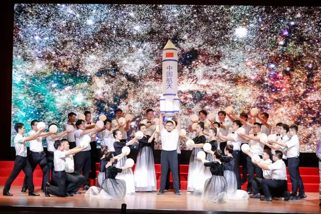 本次活動分為“民族獨立、艱苦創(chuàng)業(yè)、走向輝煌”三個篇章,合唱團表演形式豐富多彩,時而婉轉(zhuǎn)悠揚、時而激昂澎湃的歌聲,配以演職人員飽滿的情緒與真摯的情感,生動地抒發(fā)了對偉大祖國母親的熱愛,讓每位聆聽者的愛國之情在胸中激蕩。特別是各表演團隊精心制作的一個個視頻,回顧了新中國成立所歷經(jīng)的崢嶸歲月,展現(xiàn)了新中國在中國共產(chǎn)黨領導下取得的輝煌成就,謳歌了中國航天事業(yè)創(chuàng)建68年來的壯麗篇章,講述了錢學森、黃緯祿等老一輩航天人身上閃閃發(fā)光的航天精神,令人不禁泛起陣陣感動的淚光?;顒釉谌珗雎毠R唱《歌唱祖國》中落下了帷幕。