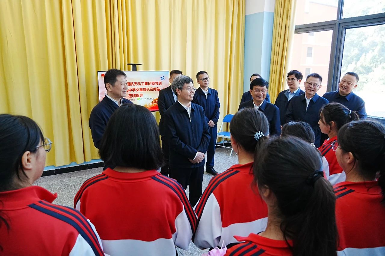 隨后,陳錫明一行前往富源縣第九中學(xué),調(diào)研航天·筑夢“春蕾計(jì)劃”公益項(xiàng)目。為積極響應(yīng)“春蕾計(jì)劃—夢想未來”行動提升推進(jìn)工作倡議,2022年,航天科工攜手全國婦聯(lián)、中國兒基會共同發(fā)起航天·筑夢“春蕾計(jì)劃”公益項(xiàng)目。該項(xiàng)目將于2023-2025年在東川區(qū)、富源縣兩地實(shí)施,通過為困難家庭女童提供學(xué)業(yè)資助、建設(shè)女童成長空間站、組織女童到航天科工相關(guān)單位開展社會實(shí)踐、邀請女科技工作者開展成長指導(dǎo)服務(wù)等,助力女童健康成長、全面發(fā)展。截至目前,航天·筑夢“春蕾計(jì)劃”公益項(xiàng)目已經(jīng)在東川區(qū)和富源縣的中小學(xué)校建成20個航天·筑夢女童成長空間站,開展女童科技素養(yǎng)提升、青春期健康教育、心理健康輔導(dǎo)等關(guān)愛服務(wù)活動200余場次,惠及女童及家庭約10萬人次。
