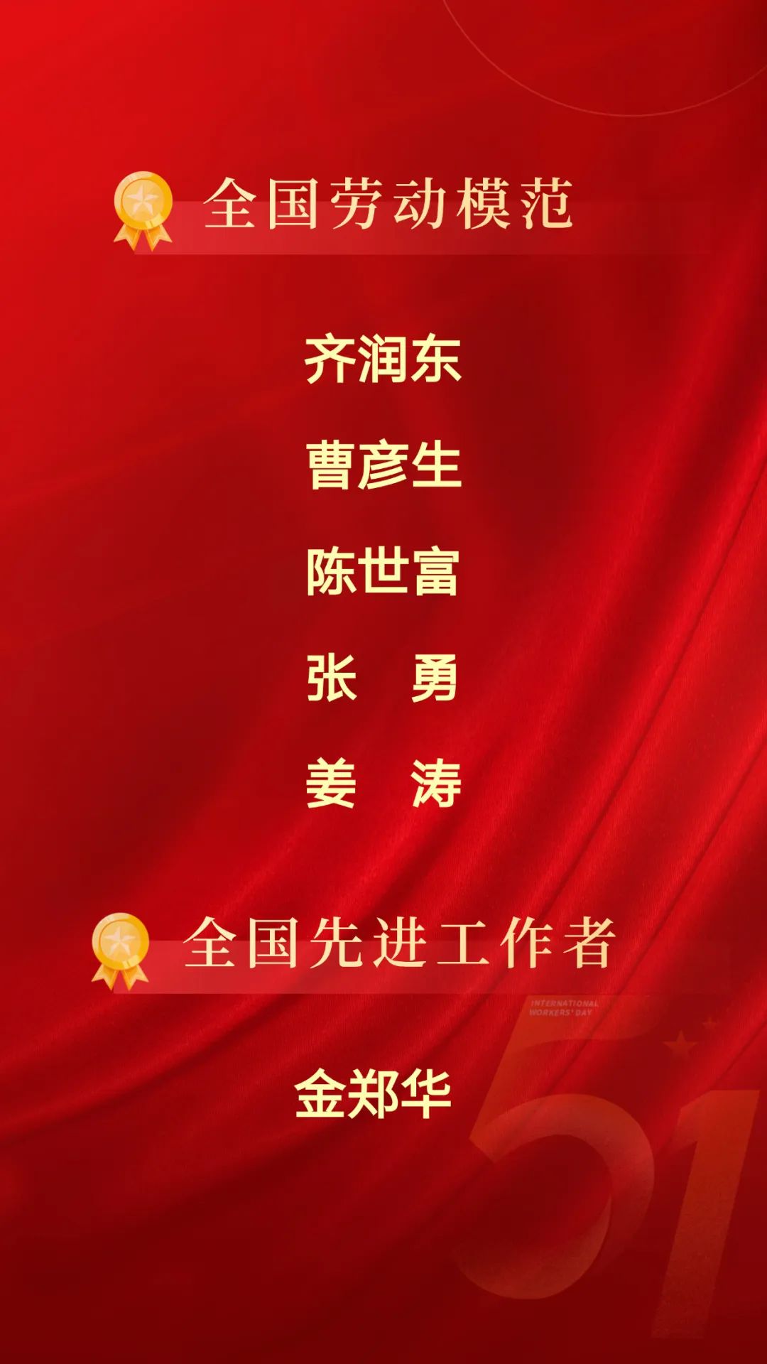中國航天科工集團(tuán)有限公司5人獲全國勞動模范表彰,1人獲全國先進(jìn)工作者表彰。