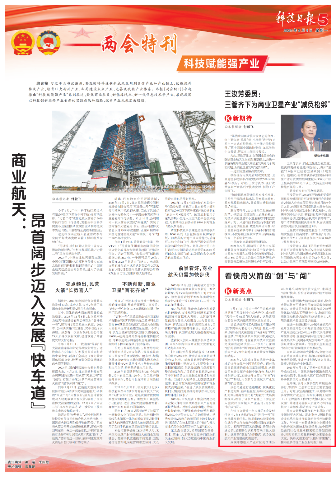 【2024全國兩會】《科技日報》兩會特刊聚焦航天三江商業(yè)航天產業(yè)發(fā)展