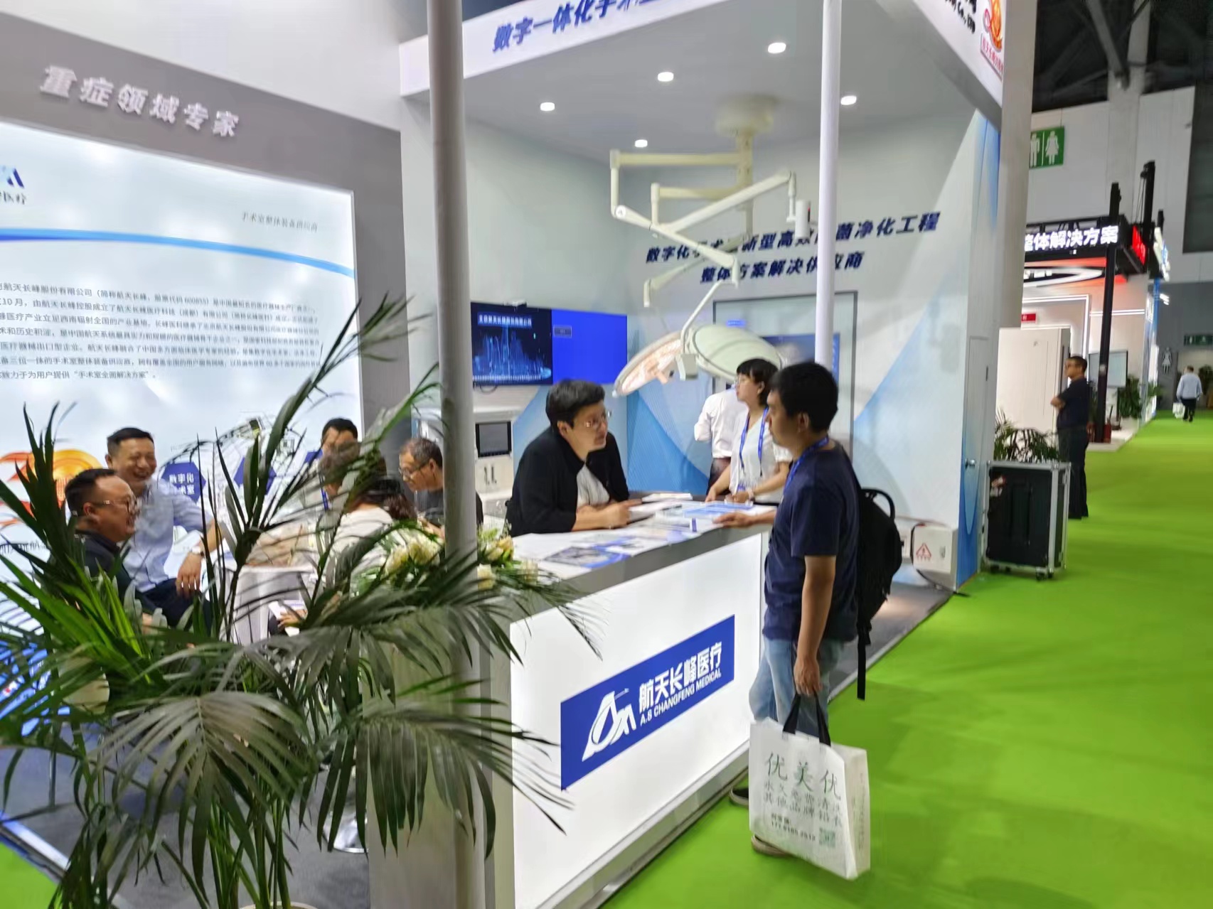 中國(guó)航天科工二院航天長(zhǎng)峰醫(yī)療坐擁主場(chǎng)優(yōu)勢(shì),攜主力產(chǎn)品參加此次盛會(huì),AIMdoris數(shù)字化手術(shù)室首次亮相,新型高效除菌凈化工程、ACM639麻醉機(jī)、ACM-L6800 LED手術(shù)無(wú)影燈、ACM-T600國(guó)產(chǎn)手術(shù)床等高端醫(yī)療裝備也吸引了眾多參展嘉賓駐足洽談。