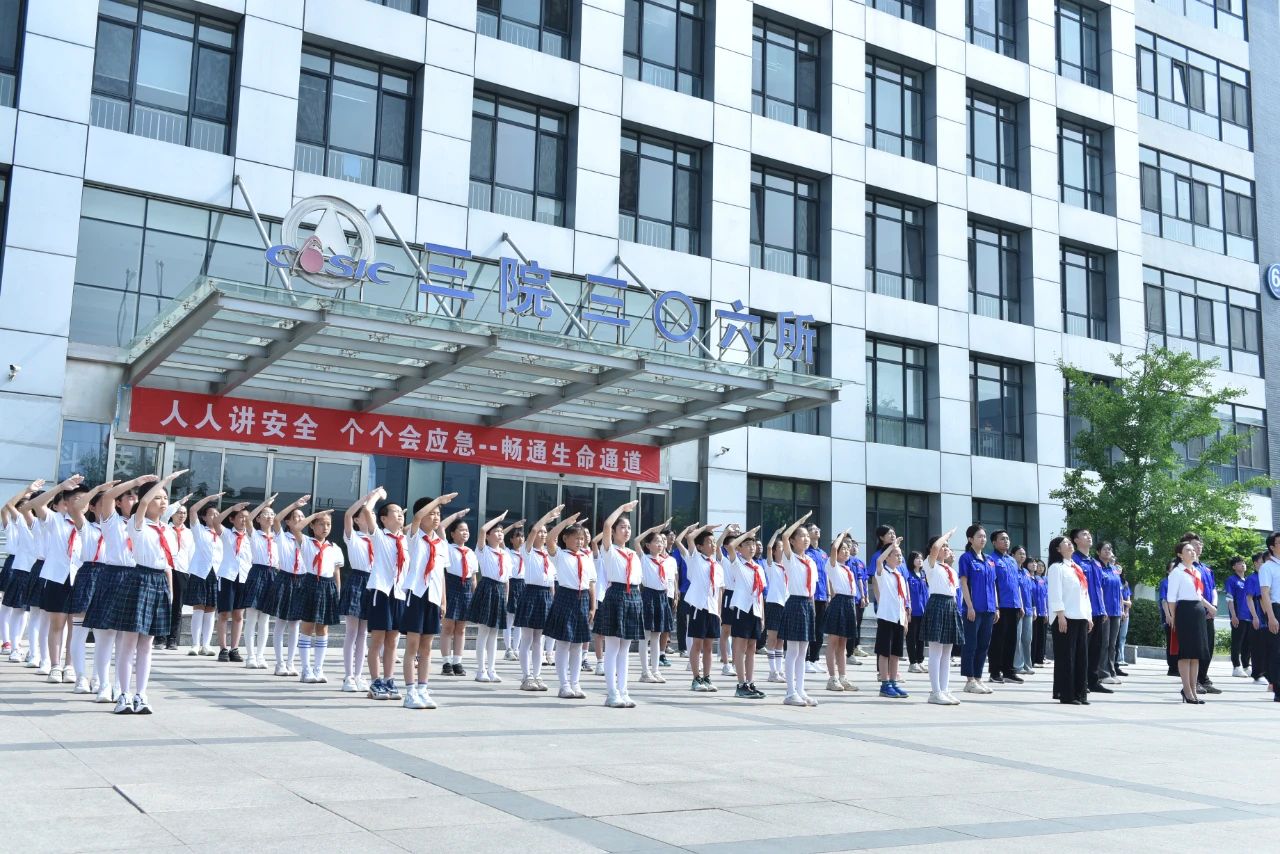 6月13日上午,由全國(guó)少工委聯(lián)合中國(guó)載人航天工程新聞宣傳辦公室舉辦的“紅領(lǐng)巾愛(ài)祖國(guó)——我心中的五星紅旗”國(guó)旗傳遞活動(dòng)(地面?zhèn)鬟f第4站)在三院306所舉行。本部相關(guān)部門領(lǐng)導(dǎo)、306所領(lǐng)導(dǎo),首都師范大學(xué)附屬云崗小學(xué)領(lǐng)導(dǎo),306所科研人員代表、云崗小學(xué)少先隊(duì)員代表共80余人參加升旗儀式。