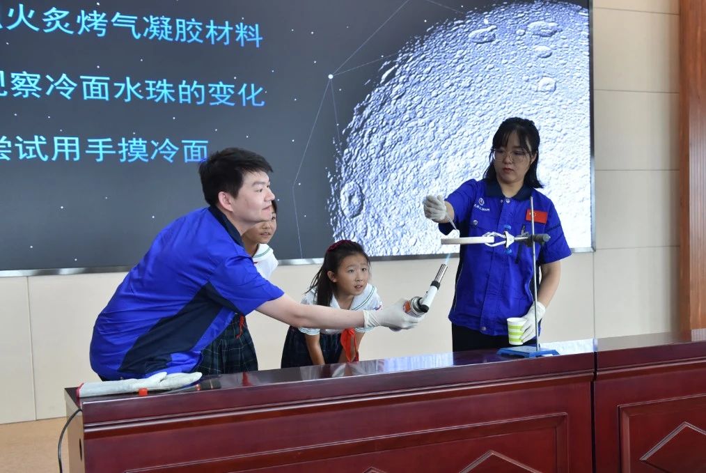 升旗儀式結(jié)束后,306所青年科技工作者廖博士為云崗小學(xué)師生帶來(lái)了一堂題為《煙火里的塵?!教觳牧霞{米氣凝膠》的科普課。課堂上,通過(guò)趣味講解、實(shí)物展示、模擬試驗(yàn)、互動(dòng)問(wèn)答等形式,對(duì)這種已經(jīng)成功運(yùn)用于長(zhǎng)征五號(hào)運(yùn)載火箭、嫦娥四號(hào)月球探測(cè)器等航天器上的新型航天材料進(jìn)行了現(xiàn)場(chǎng)揭秘,并為同學(xué)們介紹了氣凝膠研制團(tuán)隊(duì)不為人知的研發(fā)故事?;?dòng)環(huán)節(jié),學(xué)生們走上講臺(tái)親自操作實(shí)驗(yàn)儀器,零距離驗(yàn)證氣凝膠材料的優(yōu)異性能。在充滿樂(lè)趣的課堂上,同學(xué)們學(xué)習(xí)了航天知識(shí),感受到航天科技的魅力。