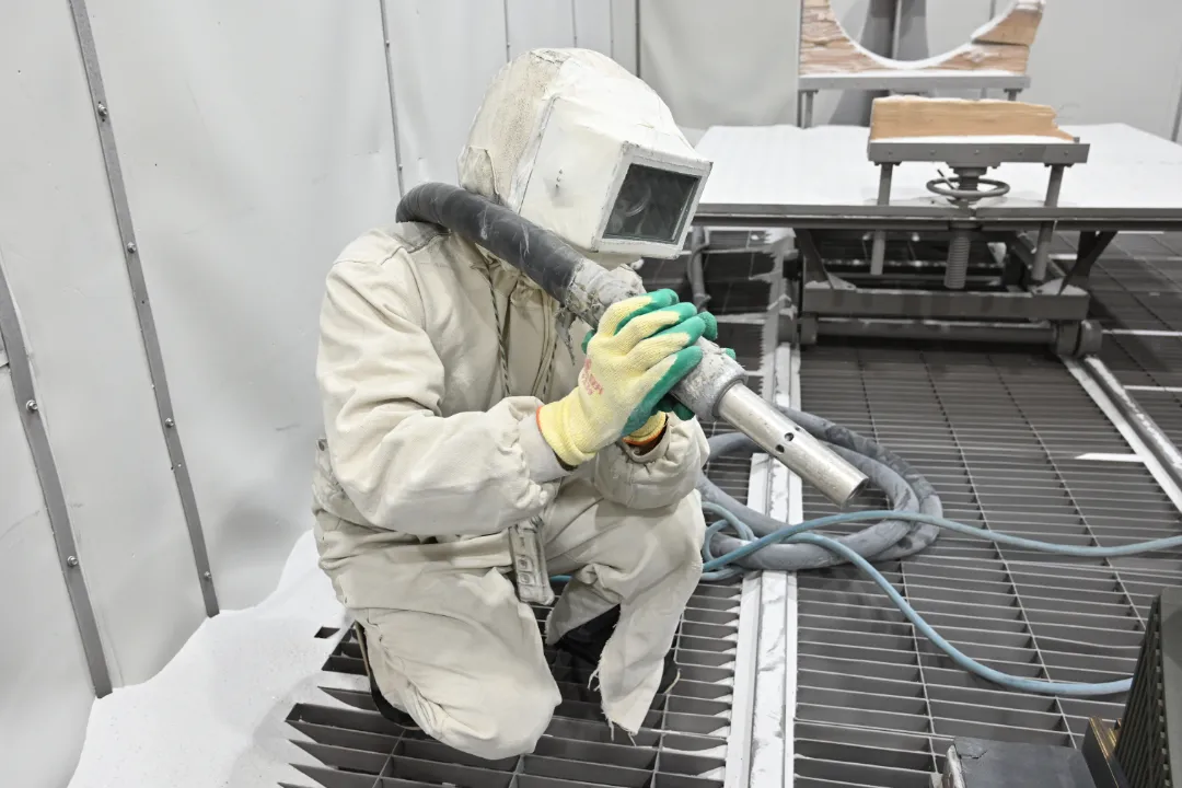 七月以來,暑氣漸顯。為保證噴砂工序生產(chǎn)進(jìn)度,紅陽公司特種制造部職工穿戴重達(dá)10斤的防護(hù)服,進(jìn)入無空調(diào)降溫的密閉噴砂間作業(yè)。這種環(huán)境下,他每隔15分鐘就要擦拭被汗水浸濕的防護(hù)服目視窗口,以確保噴砂產(chǎn)品表面質(zhì)量合格。(圖文/胡卓立)