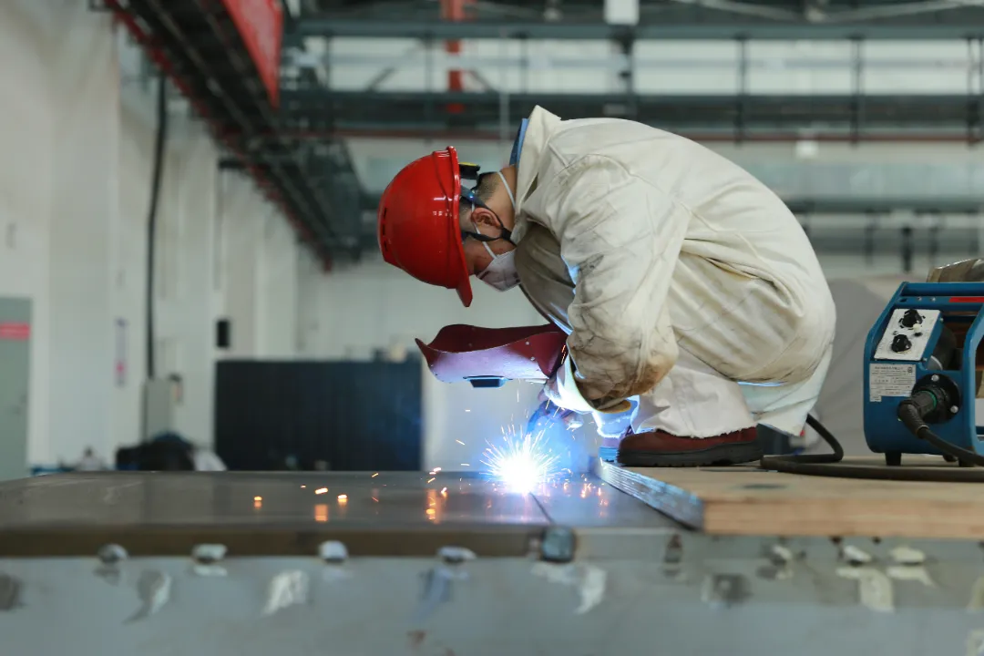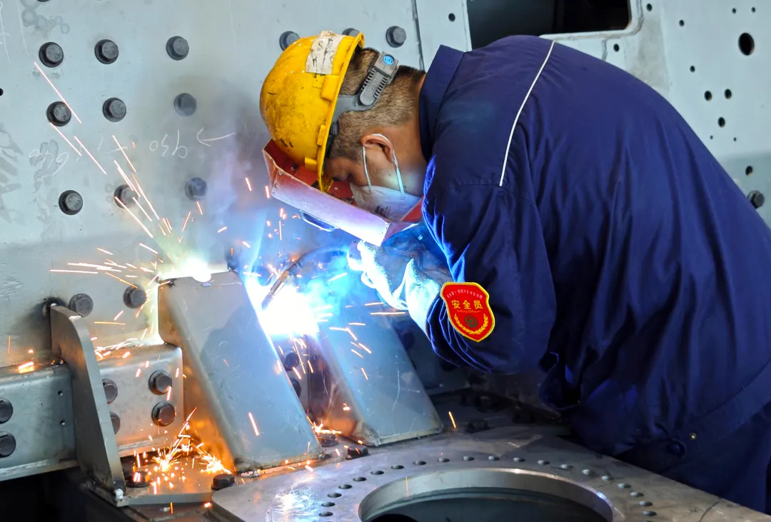 入夏以來,氣溫不斷攀升。長征公司金工車間現(xiàn)場,電焊工們穿著厚厚的防護(hù)服,手握焊槍搶抓工時,在光與熱的持續(xù)作用下“蒸”戰(zhàn)高溫。重任在肩,電焊工們直面“烤”驗(yàn),全神貫注緊盯焊接點(diǎn),防止焊接變形量,嚴(yán)守施工質(zhì)量關(guān)。(圖文/李玲)