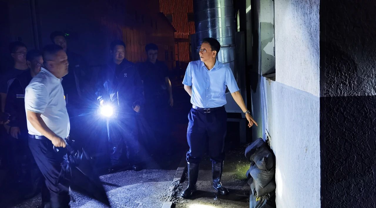 午夜時分,三院領(lǐng)導帶領(lǐng)防汛應(yīng)急小組成員奔赴云崗工業(yè)區(qū)和重點防汛區(qū)域,巡查汛情,查勘風險。
