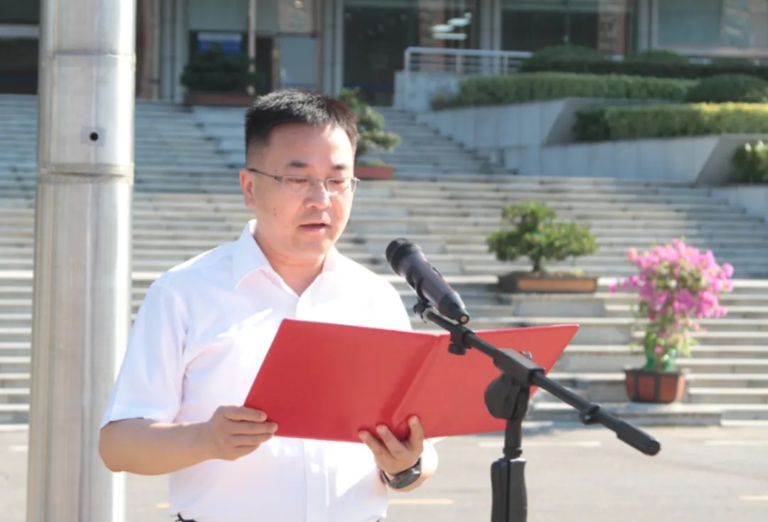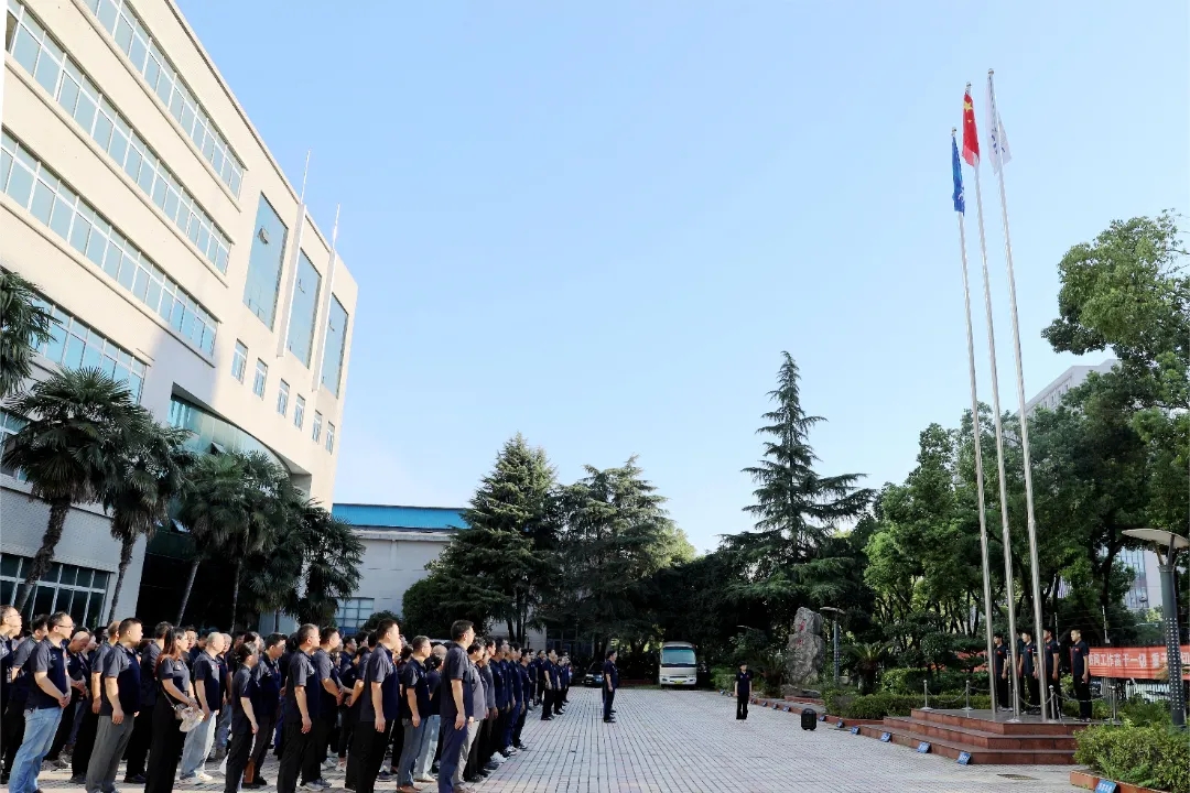 在雄壯的國歌聲中,鮮艷的五星紅旗冉冉升起。在激昂的集團公司司歌聲中,司旗迎風飄揚。