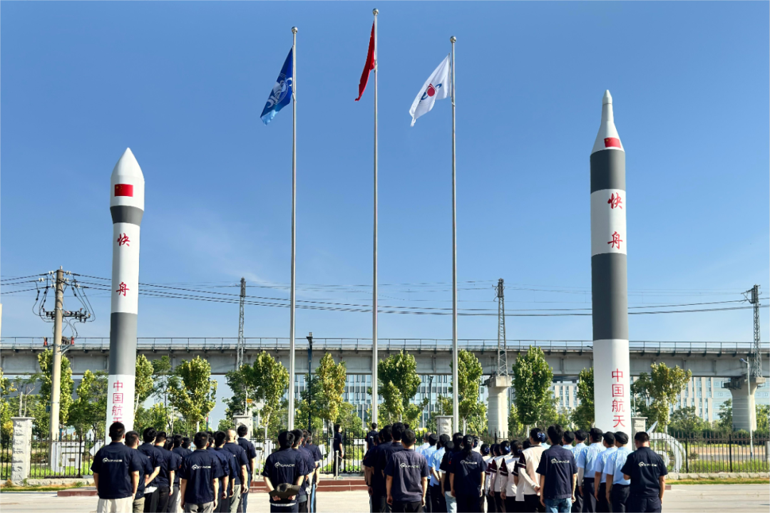 高輝文在升旗儀式上指出,1969年8月11日,周恩來總理批示“同意”建設066基地,老一輩066人胸懷獻身國防、建設祖國的崇高理想,蘆席棚里搞科研,自主研發(fā)鑄神劍,開辟了三線企業(yè)獨立研制型號裝備的先河。55年來,三江人深化改革、穩(wěn)固基業(yè),搶抓機遇、發(fā)展壯大,航天防務領域多型產(chǎn)品并駕齊驅(qū),快舟火箭常態(tài)化發(fā)射,以激光裝備、智能移動裝備為代表的一大批產(chǎn)品次第展開,每一項事業(yè)都凝聚著三江人的心血和汗水,每一份榮耀都鐫刻著三江人的責任與擔當。
