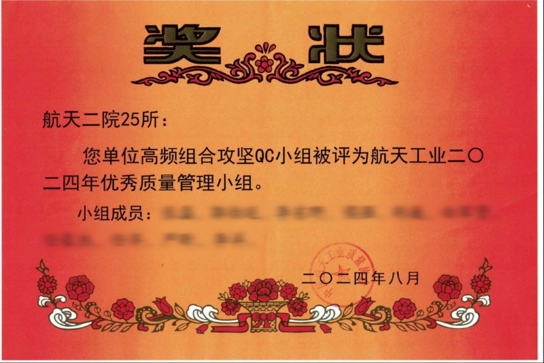航天二院25所2個(gè)QC小組獲評(píng)“航天工業(yè)優(yōu)秀質(zhì)量管理小組”