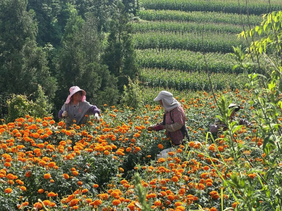 近年來,萬壽菊產(chǎn)業(yè)在云南省曲靖市富源縣大河鎮(zhèn)白馬村生根發(fā)芽。航天二院在白馬村幫扶援建了鮮花收儲點,使當(dāng)?shù)剞r(nóng)戶通過種植萬壽菊實現(xiàn)大幅增收。圖為白馬村萬壽菊迎來豐收。
