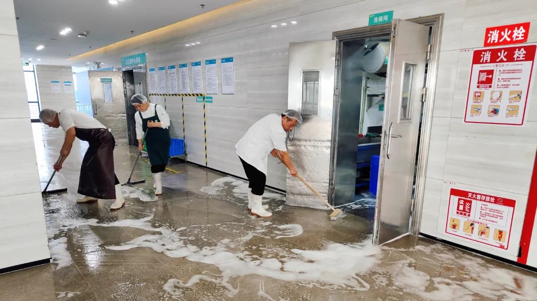 在穩(wěn)定生產(chǎn)的背后,也始終離不開默默堅守崗位后勤人員的付出。安全保障部協(xié)調(diào)安保、物業(yè)、后勤等服務(wù)保障人員集中清洗生活用水水箱,保證水質(zhì)達(dá)標(biāo)。對園區(qū)消防系統(tǒng)例行檢查,現(xiàn)場排查故障,保證消防系統(tǒng)正常運轉(zhuǎn)。物業(yè)、安保常態(tài)化服務(wù),提供整潔、舒適、安全的工作環(huán)境。食堂提前備餐,準(zhǔn)時準(zhǔn)點供應(yīng)可口的飯菜。