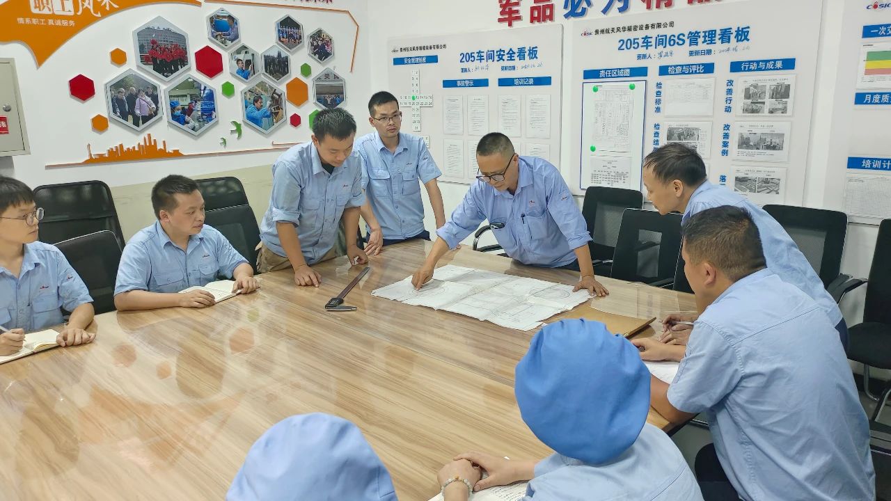 那段時(shí)間,“公差不合格”成為了每次班組早會(huì)重點(diǎn)通報(bào)的內(nèi)容。每日八點(diǎn),在寬敞的車間里,結(jié)構(gòu)件制造部數(shù)車復(fù)合組準(zhǔn)時(shí)組織開早會(huì)。組長(zhǎng)龔和生將當(dāng)前加工完成情況、工作計(jì)劃、加工難點(diǎn)等情況向17名班組成員通報(bào),以便有條不紊推進(jìn)后續(xù)生產(chǎn)進(jìn)度。