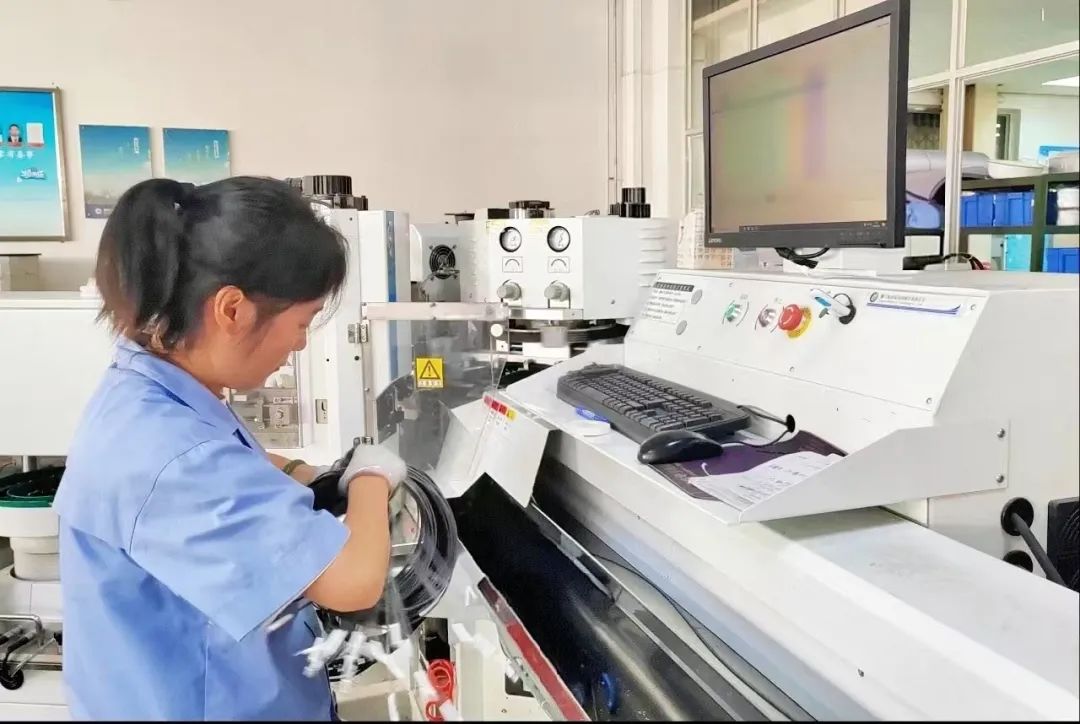 西安自動化生產(chǎn)制造中心職工正在自動下線機(jī)前打包線材,全力以赴確保項(xiàng)目電氣裝配生產(chǎn)任務(wù)能夠按節(jié)點(diǎn)順利完成。