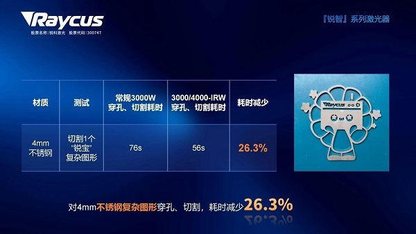 2、銳智系列性能大躍升,切割能力平均提升超40%,穿孔提升24%,復雜圖形穿孔、切割提升26.3%