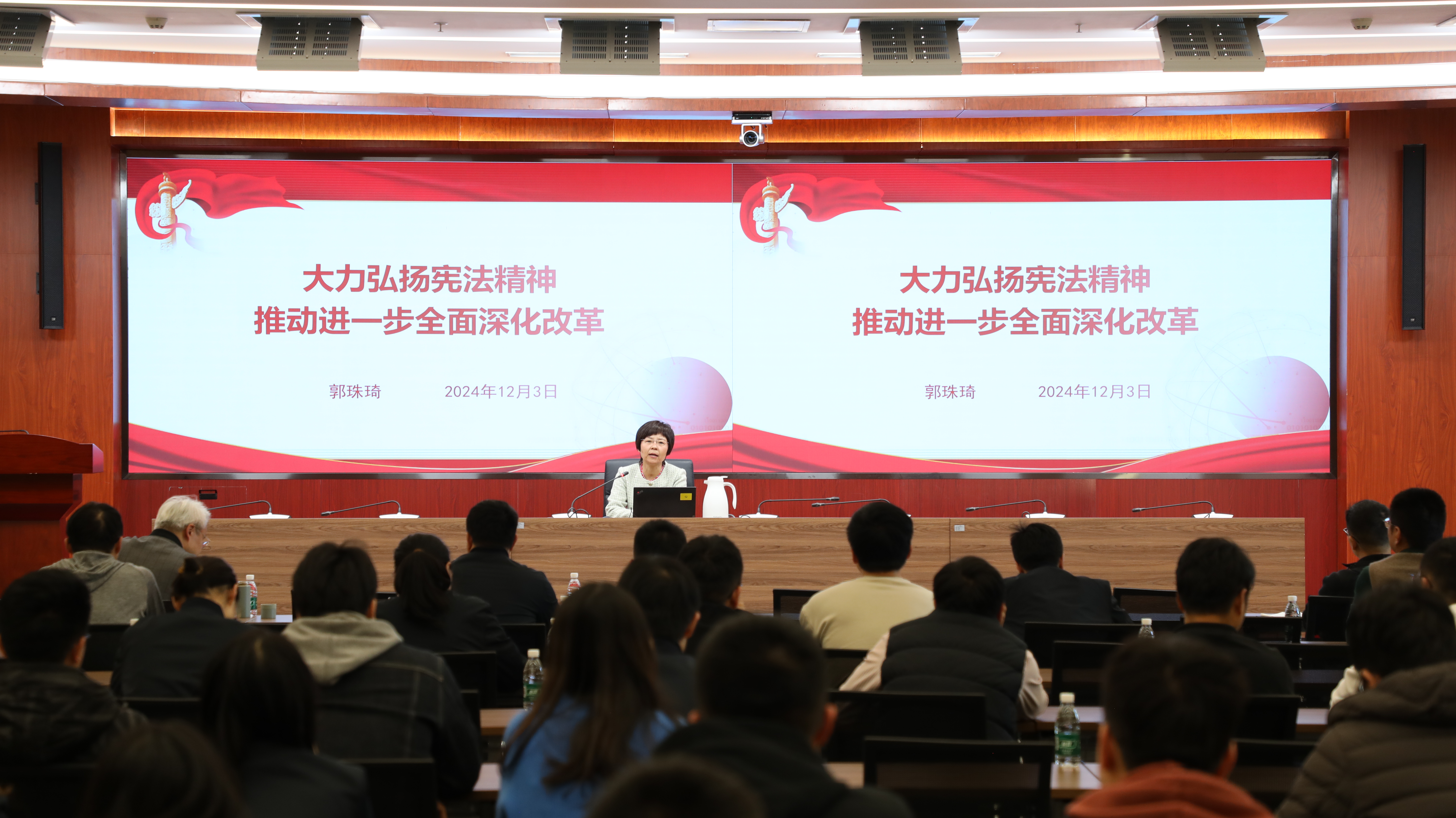 郭珠琦圍繞新中國憲法的發(fā)展歷程、憲法的地位作用及其規(guī)范性意義、習近平法治思想與新時代憲法實施、集團公司合規(guī)經(jīng)營管理相關要求等四方面開展宣講。強調(diào)要堅持以集團公司“五講四要”依法治企新理念為指導,全面貫徹落實集團公司依法合規(guī)經(jīng)營履職最新工作要求,深刻把握事業(yè)發(fā)展和個人成就的辯證關系,以價值創(chuàng)造為導向,齊心協(xié)力夯實航天智能院建設發(fā)展基礎。