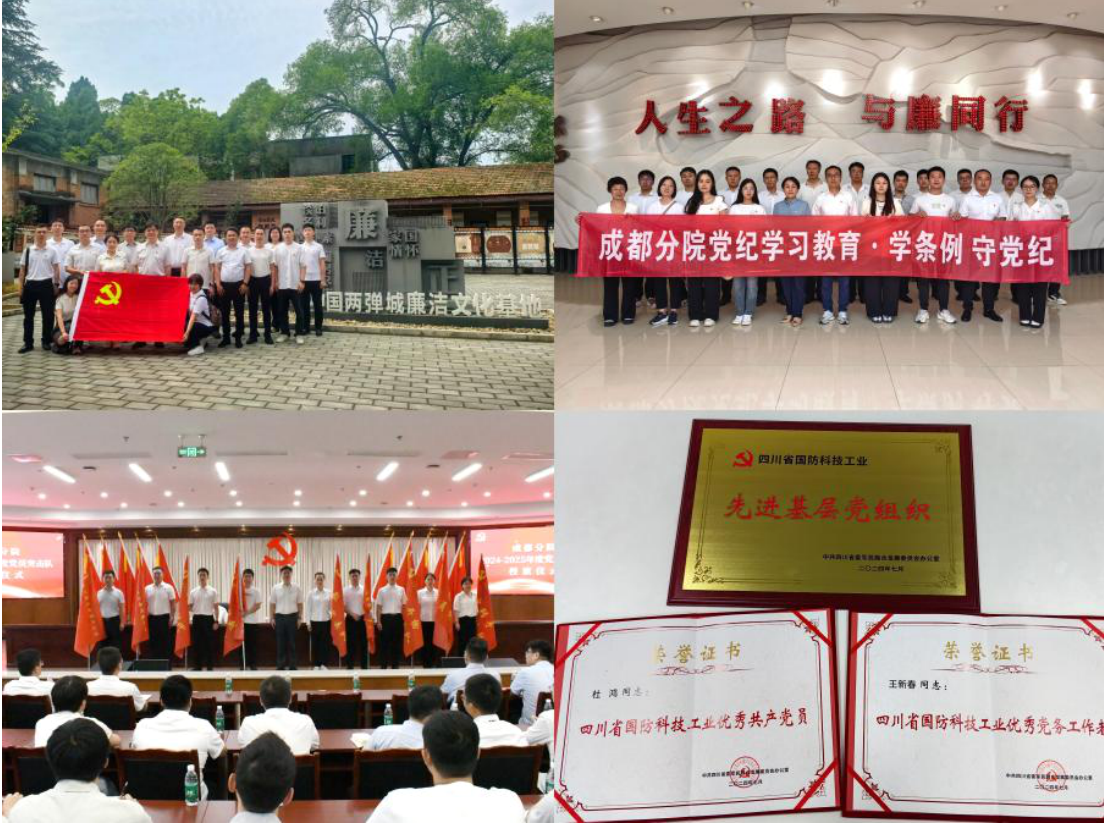 成都分院始終將黨的建設(shè)擺在首位,黨委帶領(lǐng)13個黨支部高質(zhì)量開展黨紀(jì)學(xué)習(xí)教育,通過精心組織參觀警示教育基地,舉辦漫畫解讀《中國共產(chǎn)黨紀(jì)律處分條例》展、拍攝微視頻等,嚴(yán)的基調(diào)、嚴(yán)的措施、嚴(yán)的氛圍進(jìn)一步強(qiáng)化。1個黨支部、2名黨員獲評四川省國防科技工業(yè)“兩優(yōu)一先”表彰,省級榮譽(yù)獎勵實現(xiàn)“零的突破”。10支黨員突擊隊攻堅克難,實現(xiàn)業(yè)務(wù)工作和黨建工作有效融合。