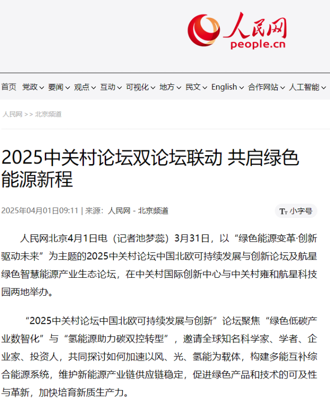 3月31日,以“綠色能源變革·創(chuàng)新驅(qū)動(dòng)未來(lái)”為主題的2025中關(guān)村論壇中國(guó)北歐可持續(xù)發(fā)展與創(chuàng)新論壇及航星綠色智慧能源產(chǎn)業(yè)生態(tài)論壇,在中關(guān)村國(guó)際創(chuàng)新中心與航天三院239廠(chǎng)航星科技園兩地成功舉辦。
