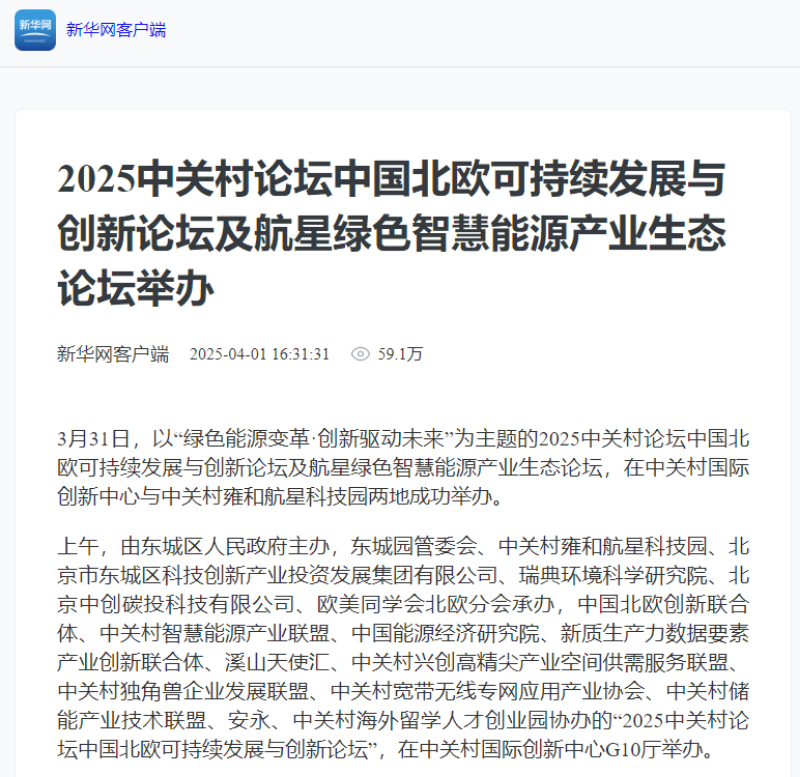 截至2025年4月10日,全網(wǎng)媒體“2025中關(guān)村論壇中國(guó)北歐可持續(xù)發(fā)展與創(chuàng)新論壇”及“航星綠色智慧能源產(chǎn)業(yè)生態(tài)論壇”相關(guān)報(bào)道信息76篇,微信、微博及門(mén)戶(hù)閱讀量800萬(wàn)+,曝光量1200萬(wàn)+,為行業(yè)及社會(huì)創(chuàng)造價(jià)值。
