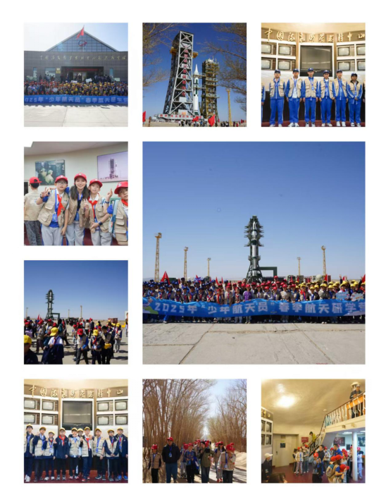 在第十個“中國航天日”當(dāng)天,同學(xué)們凌晨4:00就從營地出發(fā)前往中國酒泉衛(wèi)星發(fā)射中心,奔赴一場和神舟二十號載人飛船的浪漫之約。經(jīng)過數(shù)小時車程,大家早早來到東風(fēng)航天城,在老師們帶領(lǐng)下走進(jìn)酒泉衛(wèi)星發(fā)射中心歷史展覽館,了解中國載人航天工程和中國空間站的奧秘,學(xué)習(xí)航天員在太空的生活和工作知識;來到“東方紅”衛(wèi)星發(fā)射場,感受“兩彈一星”精神。在高高的發(fā)射塔架下,來自全國各地的同學(xué)們手拉手互動,在“東方紅”衛(wèi)星升起的地方齊聲吶喊出最美好的祝福“祝神舟二十號發(fā)射成功!”