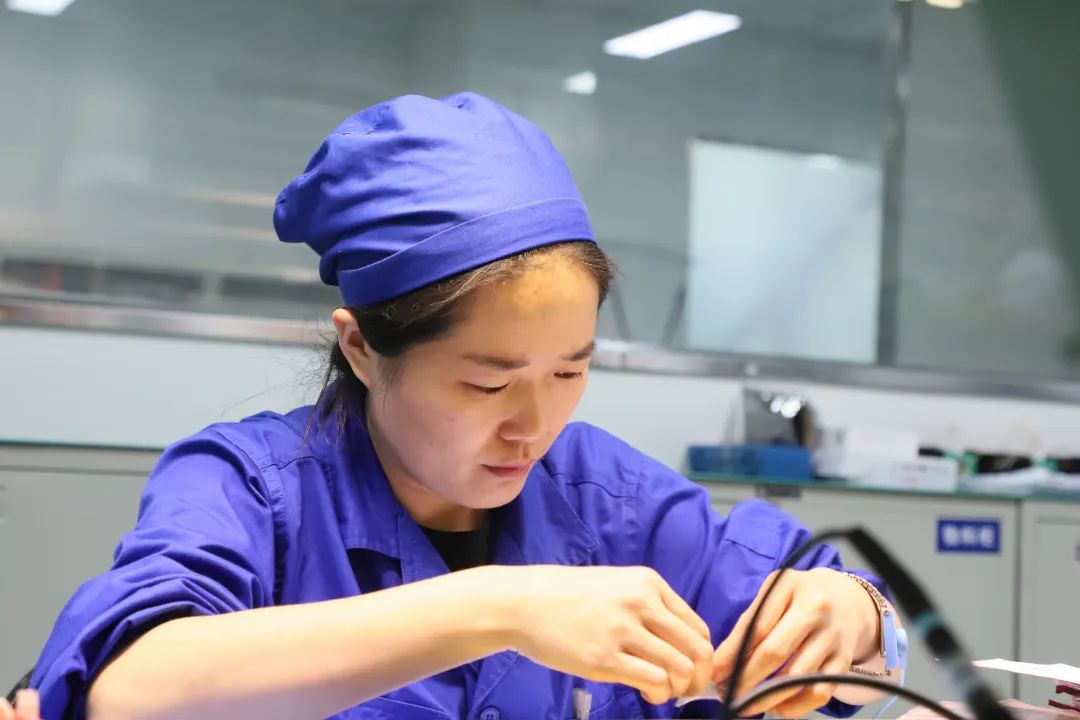 作為電裝中心的王牌導(dǎo)師,小徐憑借精湛技藝和耐心教導(dǎo),培養(yǎng)出一批批骨干。她不僅以身作則,以專注嚴(yán)謹(jǐn)?shù)膽B(tài)度投入工作,更會(huì)在徒弟們疲憊時(shí)暖心鼓勁:加把勁,我們一定能完成。在這樣團(tuán)結(jié)奮進(jìn)的氛圍中,大家爭(zhēng)分奪秒、你追我趕,全力推動(dòng)生產(chǎn)進(jìn)度。