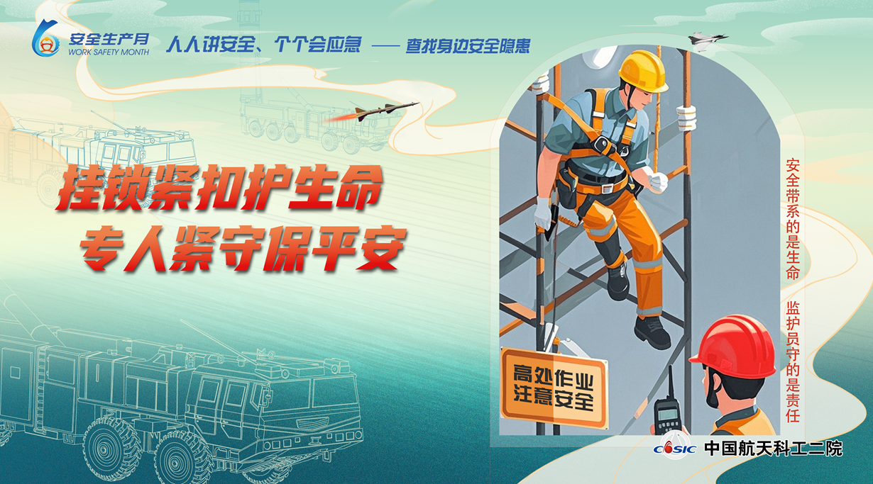 為堅持以習(xí)近平新時代中國特色社會主義思想為指導(dǎo),認(rèn)真貫徹落實黨的二十大和二十屆二中、三中全會精神以及習(xí)近平總書記關(guān)于安全生產(chǎn)的重要論述和重要指示批示精神,堅持人民至上、生命至上,統(tǒng)籌發(fā)展和安全、保供與安全,以“人人講安全個個會應(yīng)急——查找身邊安全隱患”為主題,以防范化解重大安全風(fēng)險為主線,深入推進安全生產(chǎn)治本攻堅三年行動,加強風(fēng)險隱患排查治理,嚴(yán)格責(zé)任制落實,扎實做好重點領(lǐng)域“一件事”全鏈條治理,不斷提升安全生產(chǎn)治理能力和水平,按照國家、上級及院有關(guān)文件要求,航天二院對“安全生產(chǎn)月”活動進行了專題策劃。