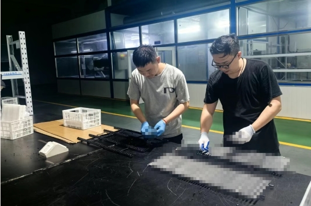 全力促生產(chǎn)同心協(xié)力:當(dāng)噴涂線深夜積壓時,剛完成氧化任務(wù)的易工、岳工、葛工等人主動轉(zhuǎn)戰(zhàn)支援;檢驗(yàn)寧工、方工、鮑工、黃工組成“多維質(zhì)量鎖”,接力合作完成產(chǎn)品檢驗(yàn),最終實(shí)現(xiàn)產(chǎn)品的如期交付?!捌帘文苁帧备鸸っν瓯緧徍笳驹谕磕z工作區(qū),用纖纖巧手幫助伙伴校準(zhǔn)膠槍軌跡;“萬能”吳工是哪里需要奔哪里,產(chǎn)線各處都能看到他忙碌協(xié)作的身影。