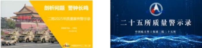 制作二院《質(zhì)量警示錄》,組織全院6000余人觀看集團(tuán)公司和二院質(zhì)量警示錄。二部、25所、206所、699廠等單位結(jié)合實(shí)際情況,編制了本單位質(zhì)量案例警示錄并在本單位循環(huán)展播。