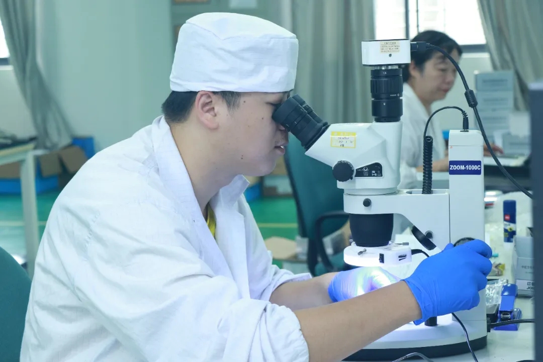 篩選員們像偵探般,以極致的耐心“偵查” 器件的潛在問題,調(diào)角度、換光源、變焦距,用顯微鏡反復(fù)觀測(cè)對(duì)比每一個(gè)細(xì)節(jié)。檢測(cè)一個(gè)器件至少要3分鐘,操作期間眼睛幾乎不離目鏡,一天需要檢測(cè)上百個(gè)器件。“連著盯一上午目鏡,眼睛又脹又痛,但我們不敢快,也快不了。連接器曲面多、引腳深,找到一個(gè)最佳觀察點(diǎn)就像在迷宮里找出口。”小鄭揉著發(fā)紅的眼眶笑著說道。