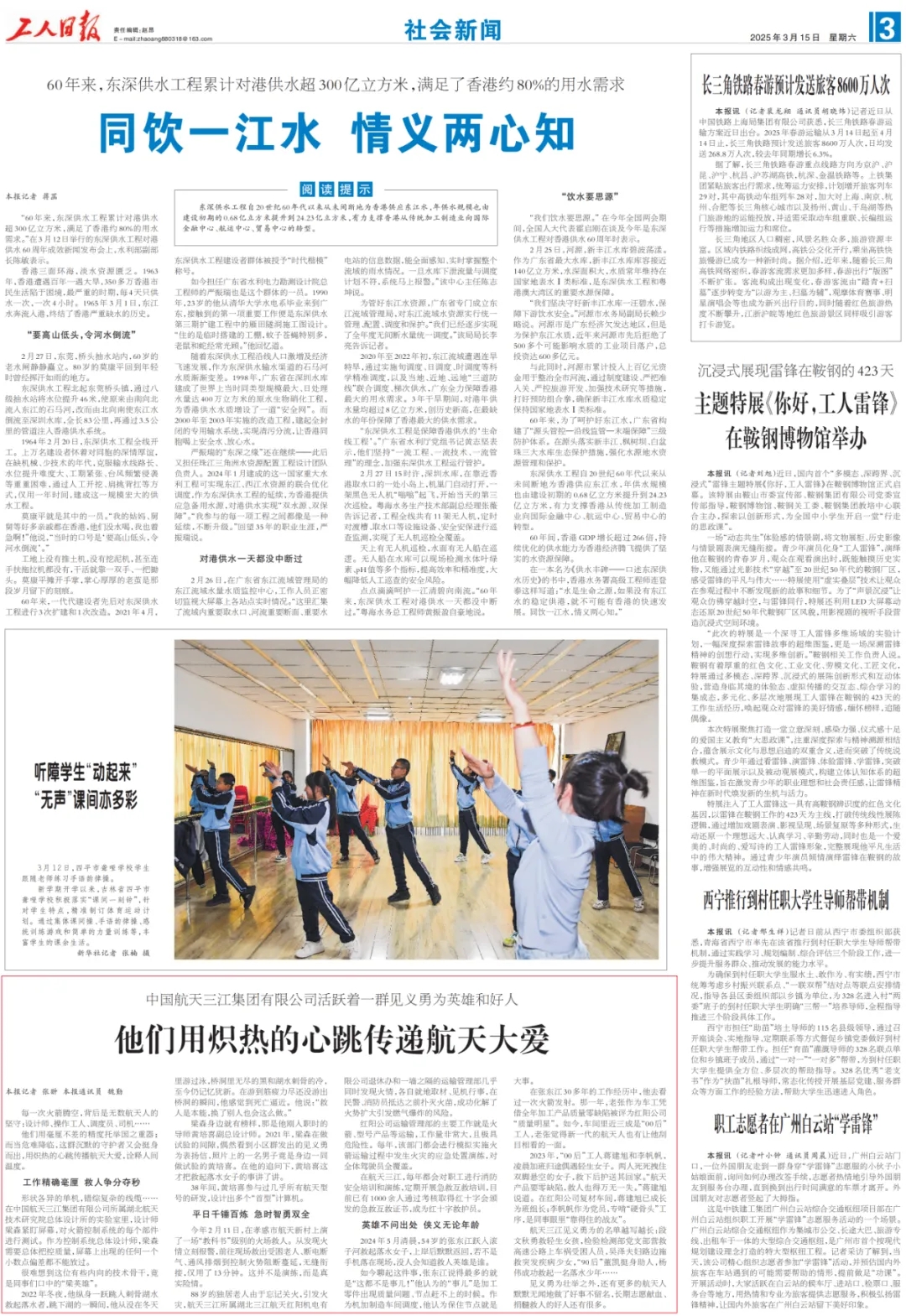 3月15日,《工人日報》三版以《他們用熾熱的心跳傳遞航天大愛》為題,報道了九院該群體的感人事跡。原文如下: