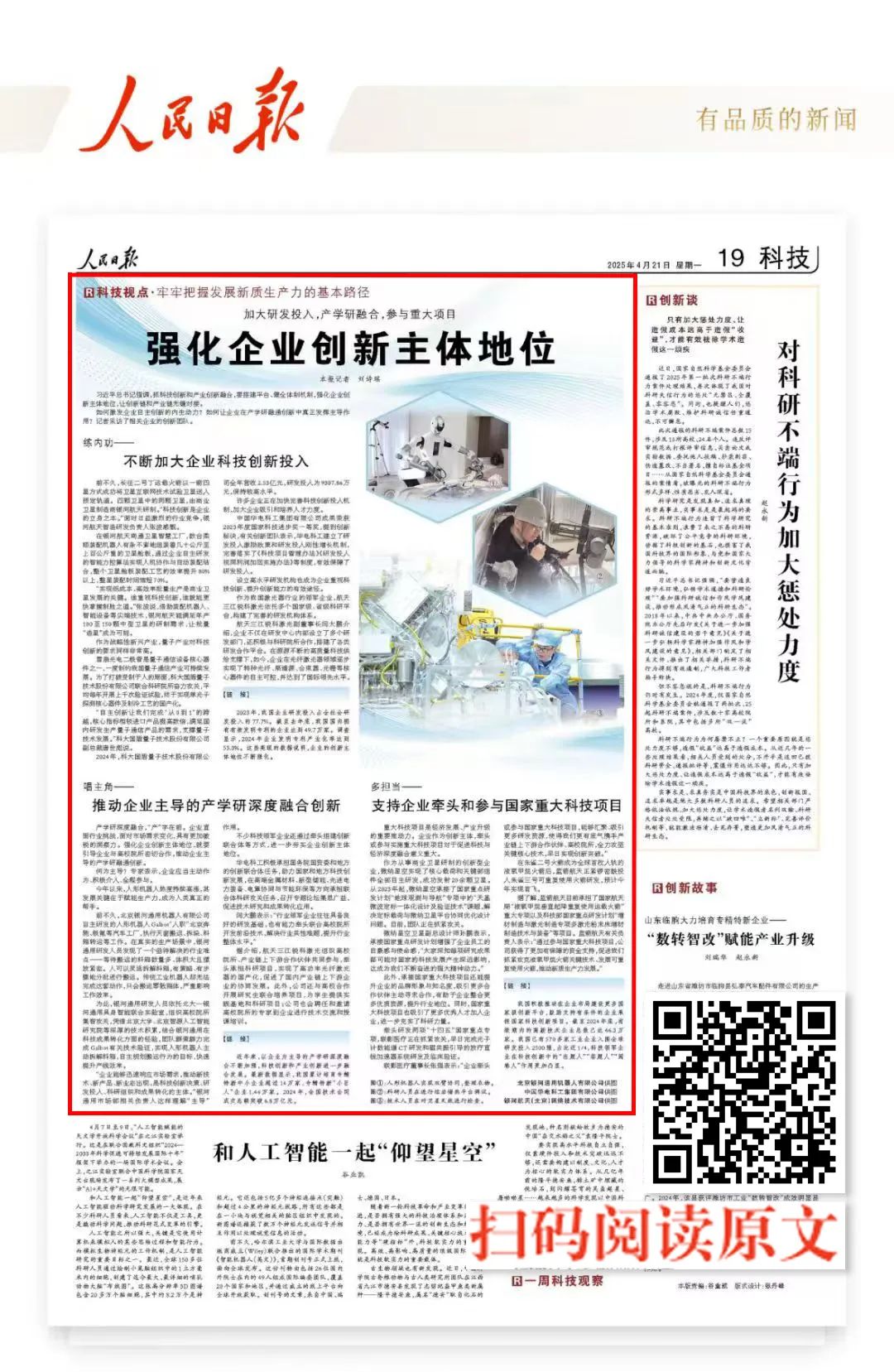 《人民日報》科技版頭條:強(qiáng)化企業(yè)創(chuàng)新主體地位