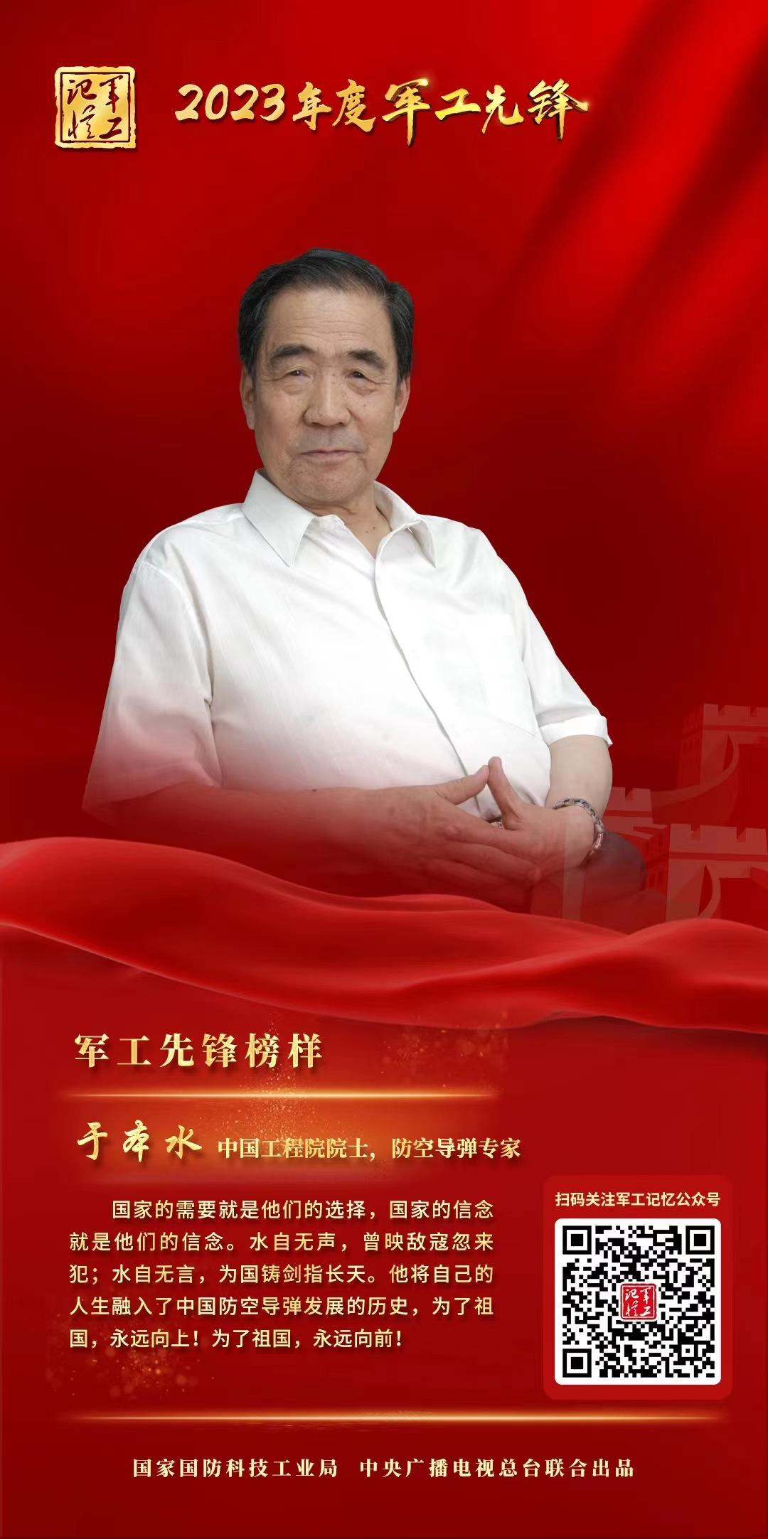 2023年12月28日晚,由中央廣播電視總臺軍事節(jié)目中心和國家國防科技工業(yè)局新聞宣傳中心聯(lián)合打造的年度重點(diǎn)特別節(jié)目《軍工先鋒》在CCTV-7國防軍事頻道播出。我國著名防空導(dǎo)彈專家于本水院士當(dāng)選2023年度“軍工先鋒榜樣”。