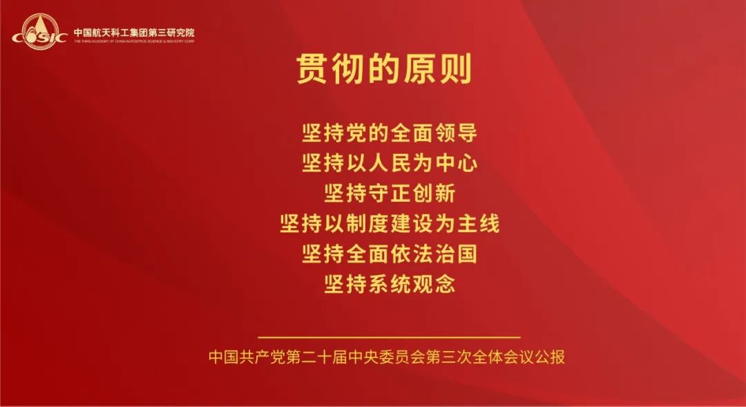 黨的二十屆三中全會(huì),是在以中國(guó)式現(xiàn)代化全面推進(jìn)強(qiáng)國(guó)建設(shè)、民族復(fù)興偉業(yè)的關(guān)鍵時(shí)期召開(kāi)的一次十分重要的會(huì)議。航天三院黨委將學(xué)習(xí)好宣傳好貫徹好黨的二十屆三中全會(huì)精神作為當(dāng)前和今后一個(gè)時(shí)期的一項(xiàng)重大政治任務(wù),高度重視,迅速行動(dòng),引導(dǎo)三院全體黨員干部職工把思想和行動(dòng)統(tǒng)一到全會(huì)精神上來(lái),把智慧和力量凝聚到落實(shí)全會(huì)精神和部署上來(lái),聚焦主責(zé)主業(yè),履行強(qiáng)軍首責(zé),持續(xù)推動(dòng)飛航事業(yè)高質(zhì)量發(fā)展。