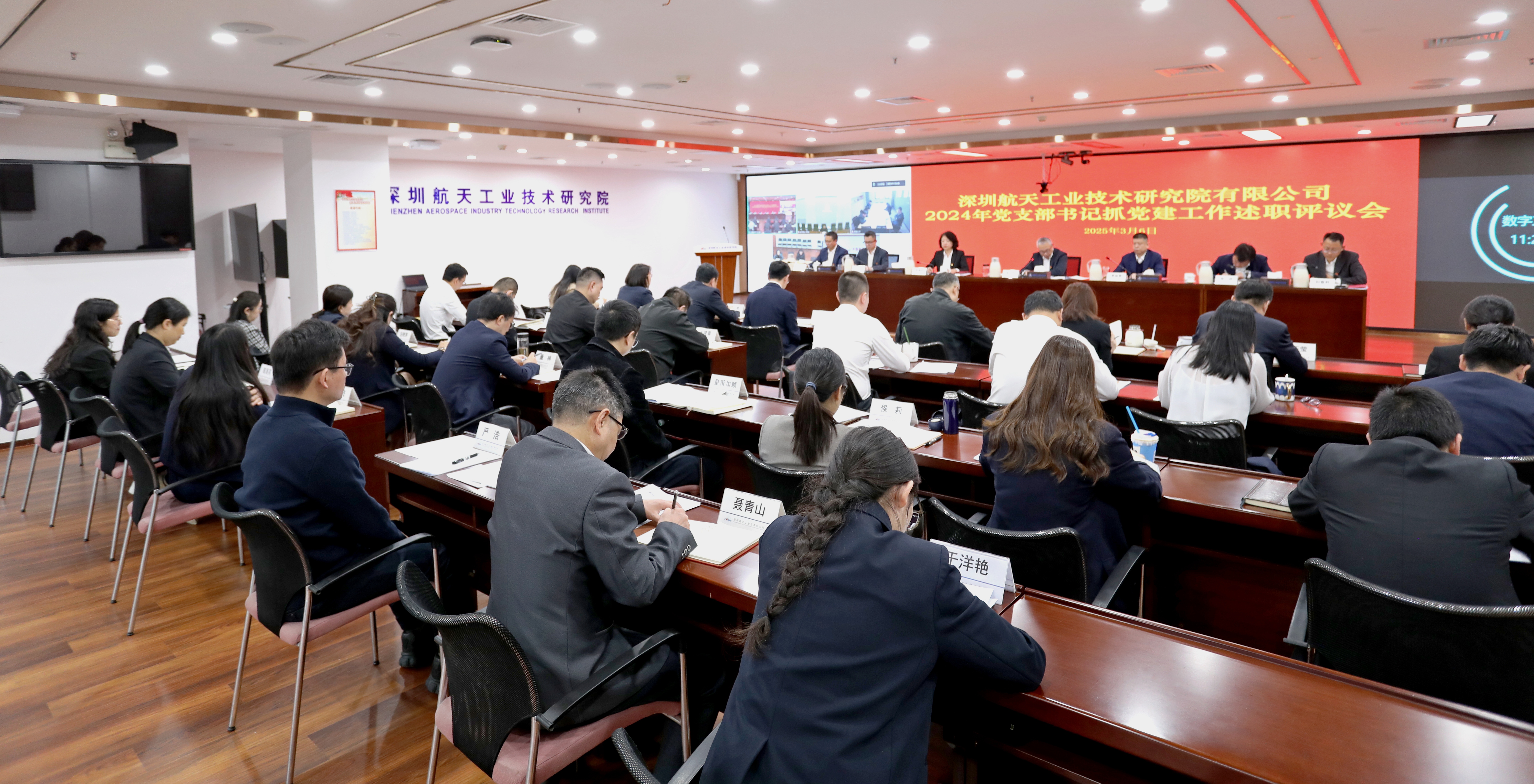 集團(tuán)公司黨建工作第三督導(dǎo)組副組長于希到會指導(dǎo),航天工研院黨委書記、董事長金立亮等在深領(lǐng)導(dǎo)班子成員,本部各部門負(fù)責(zé)人,所屬黨支部書記、副書記、委員等分別在主會場和視頻分會場參加。
