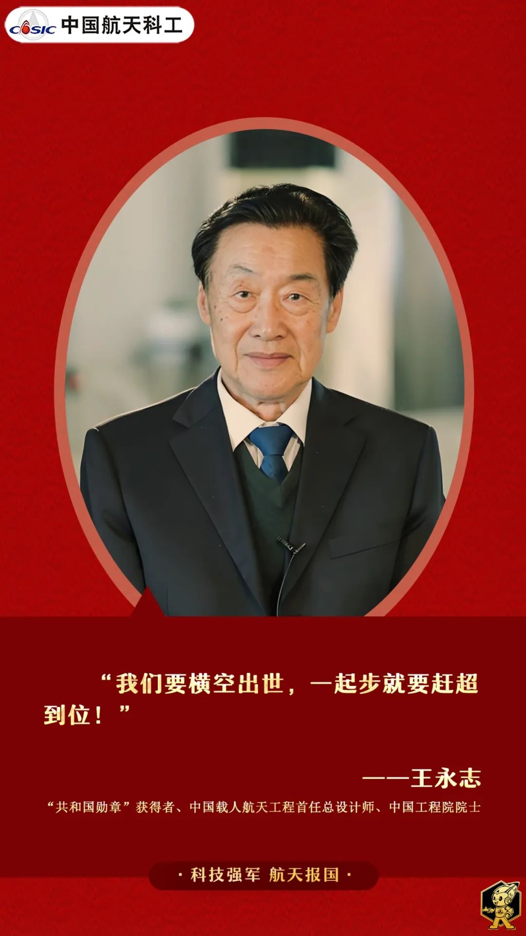 發(fā)布時(shí)間:2024-09-30 信息來(lái)源: 央視網(wǎng) 《國(guó)家勛章和國(guó)家榮譽(yù)稱號(hào)獲得者|王永志——時(shí)刻聽從國(guó)家召喚 敢于赴湯蹈火》中國(guó)航天報(bào)《“共和國(guó)勛章”獲得者丨王永志:永志不忘強(qiáng)國(guó)夢(mèng)》中國(guó)新聞周刊、中國(guó)航天科工