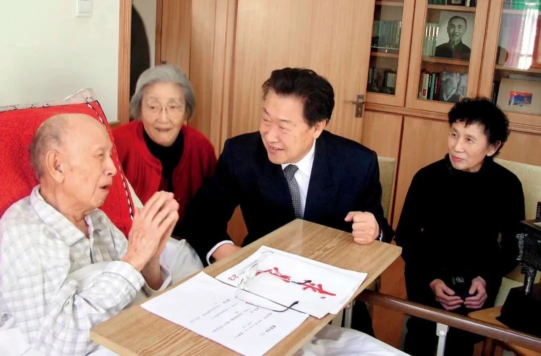 2005年12月,王永志(右二)夫婦探望恩師錢學(xué)森(左一)夫婦