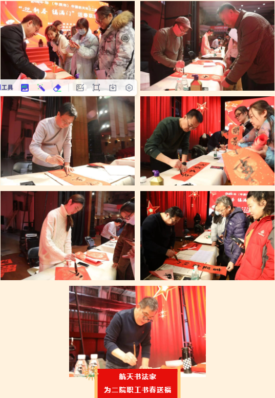 來自中國航天書法家協(xié)會、中國公安書法家協(xié)會、中國金融書法家協(xié)會的書法家以及航天科技五院、九院和航天科工二院、三院的七位航天書法家為二院職工送來了新春的祝福。