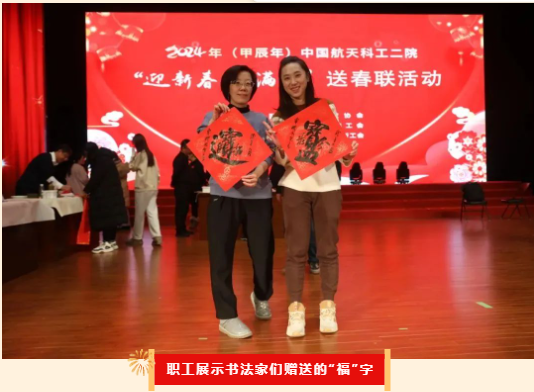 近日,在甲辰年新春佳節(jié)即將到來之際,為進一步激發(fā)廣大職工建功新時代、建設航天強國的豪情,營造喜慶和諧、健康文明的濃郁節(jié)日氣氛,由中國航天書法家協(xié)會主辦,中國航天科工二院工會承辦,203所工會協(xié)辦的2024年“迎新春 福滿門”送春聯(lián)活動在二院職工文化中心隆重舉行,為廣大職工群眾送上了新春祝福,傳遞了節(jié)日喜悅。