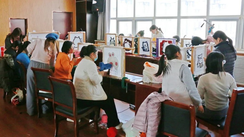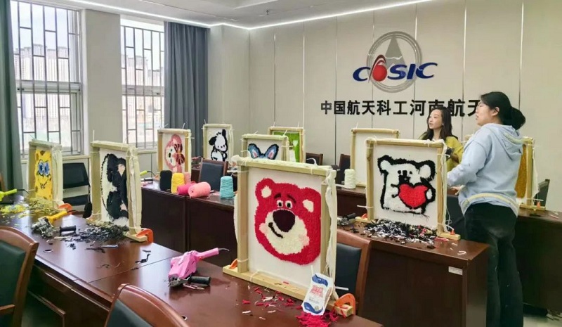 3月8日,為增加節(jié)日氣氛,展現新時代巾幗風采,河南航天本部工會開展了慶祝“三八”國際婦女節(jié)簇絨毛毯DIY活動。隨著機器響起,映入眼簾的是女職工拿起簇絨槍在一張簇絨布上扎扎戳戳。在老師的指導下,大家逐漸找到訣竅,投影描繪、挑選毛線、運作簇絨槍、刷乳膠貼布、修整鏟平……簇絨槍“突突”的聲音和大家驚喜歡快的談笑聲交織著,奏出一曲明快奔放地交響樂。經過不懈的努力,心儀的圖案也一點點變成柔軟的展現,琳瑯滿目、豐富多彩。