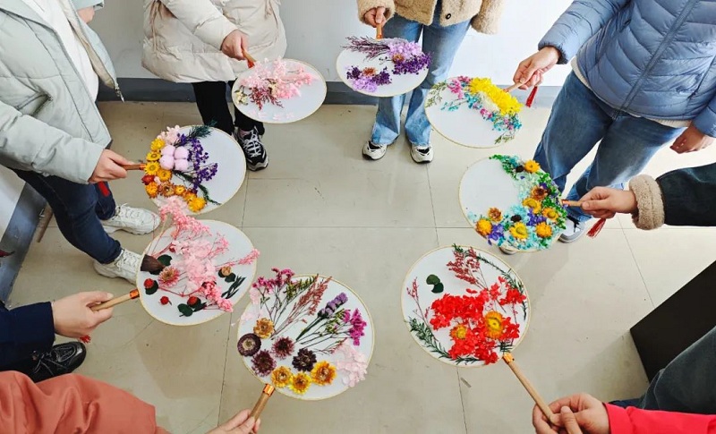整個過程中,大家相互交流團扇制作的細節(jié),彼此欣賞夸贊,綻放出喜悅的笑臉?;顒幼詈?,大家聚在一起將做好的團扇展示拍照,共同合影留念,此次活動也在一片歡聲笑語的氣氛中圓滿結束。