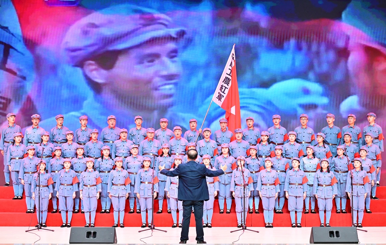 來(lái)自十院本部及各單位的14支參賽隊(duì)同臺(tái)競(jìng)技,用慷慨激昂的歌聲、飽滿真摯的熱情,聲情并茂演繹了《祝福祖國(guó)》《四渡赤水出奇兵》《春風(fēng)十萬(wàn)里》《壯美延安》《我們一起遠(yuǎn)航》《百年守望》《在太行山上》《祖國(guó)不會(huì)忘記》等一首首振奮精神、催人奮進(jìn)的紅色經(jīng)典歌曲,共同追憶崢嶸歲月、傳承紅色基因、凝聚奮進(jìn)力量。比賽結(jié)束后,十部、航天風(fēng)華、航天電器等單位青年為觀眾獻(xiàn)上歌舞表演《山河圖》。
