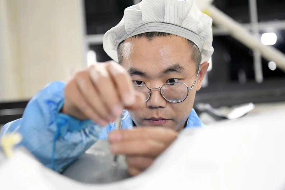 “白班人員因臨時搶制其他產(chǎn)品任務(wù),未完成當(dāng)班規(guī)定數(shù)量,我們晚班要搶出來,確保當(dāng)天進(jìn)度?!苯M長老羅認(rèn)真組裝著部件介紹。自四季度開始以來,這種生產(chǎn)狀態(tài)對小組全員來說已是常態(tài)。“累,但能克服,保證完成任務(wù)!”老羅語氣充滿堅定。
