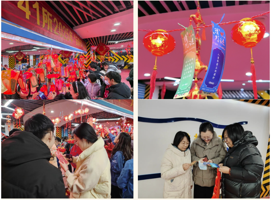 活動(dòng)現(xiàn)場(chǎng)張燈結(jié)彩,喜氣洋洋。41所工會(huì)精心組織,職工積極參與現(xiàn)場(chǎng)布置和活動(dòng)開(kāi)展?;顒?dòng)現(xiàn)場(chǎng)懸掛著大大小小的中國(guó)結(jié)、紅燈籠,300多條燈謎琳瑯滿目,到處洋溢著濃濃的節(jié)日氛圍。