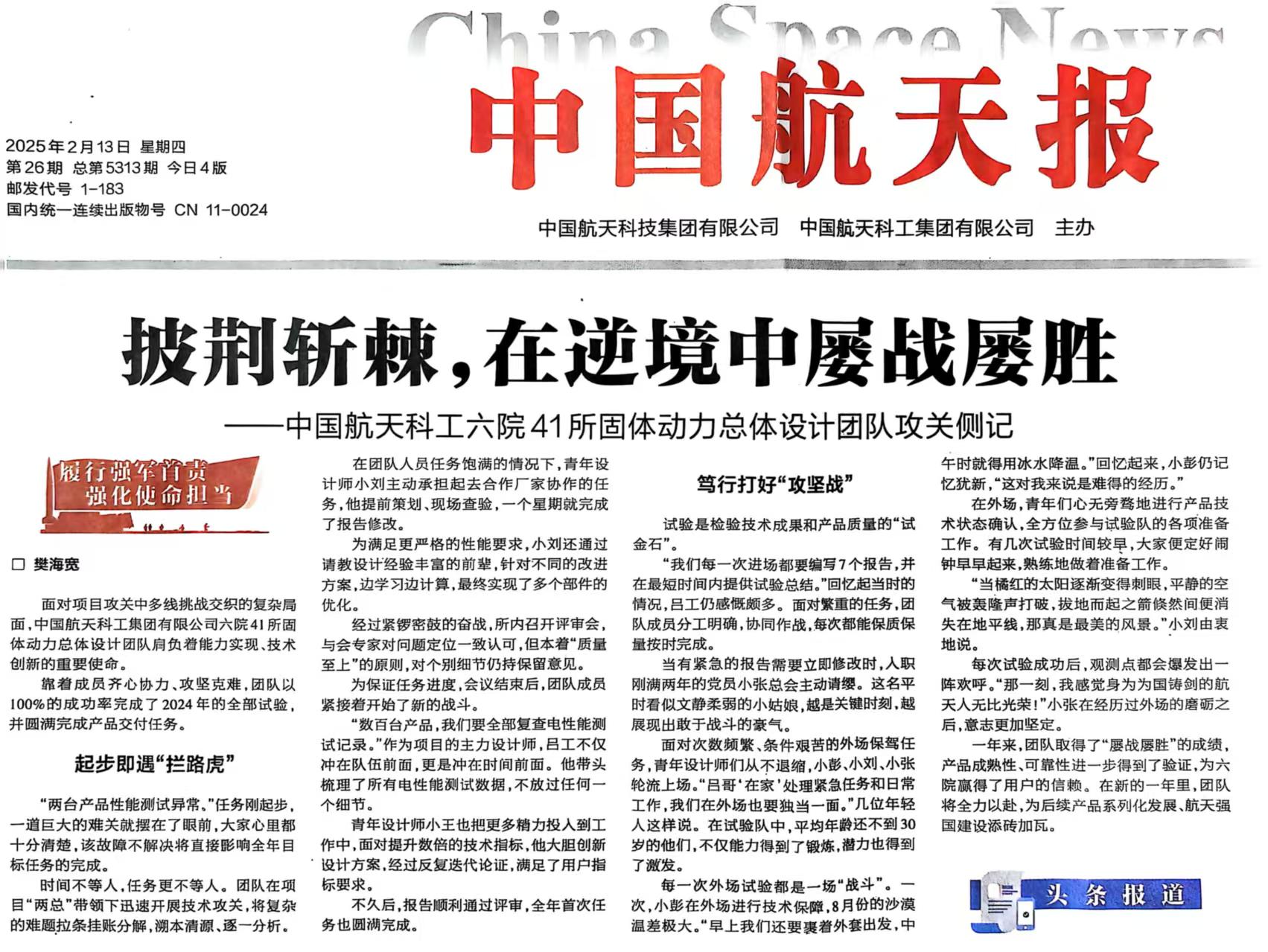 披荊斬棘 在逆境中屢戰(zhàn)屢勝——航天科工六院41所固體動(dòng)力總體設(shè)計(jì)團(tuán)隊(duì)攻關(guān)側(cè)記