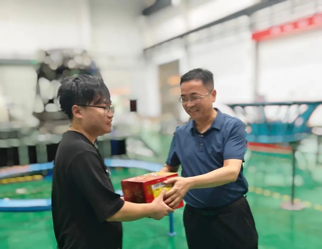 7月8日,航天三江黨委書(shū)記、董事長(zhǎng)高輝文,黨委委員、總會(huì)計(jì)師弓興隆前往快舟產(chǎn)業(yè)園慰問(wèn)高溫下奮戰(zhàn)一線的快舟試驗(yàn)隊(duì)員和各項(xiàng)目人員。