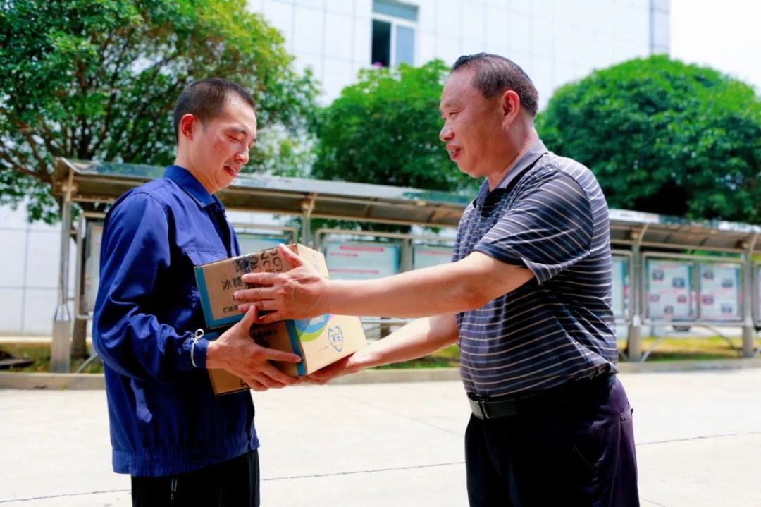 為應(yīng)對(duì)安全生產(chǎn)挑戰(zhàn)、保障一線職工平安度夏,江北公司分批次向一線職工發(fā)放冰棍、藥品等防暑物資,并以此為抓手改善職工高溫作業(yè)環(huán)境,為“江北人”撐起關(guān)愛(ài)之傘,共促企業(yè)發(fā)展。圖為公司工會(huì)工作人員為車(chē)間職工送去降溫物資。(圖文/黃家騰)